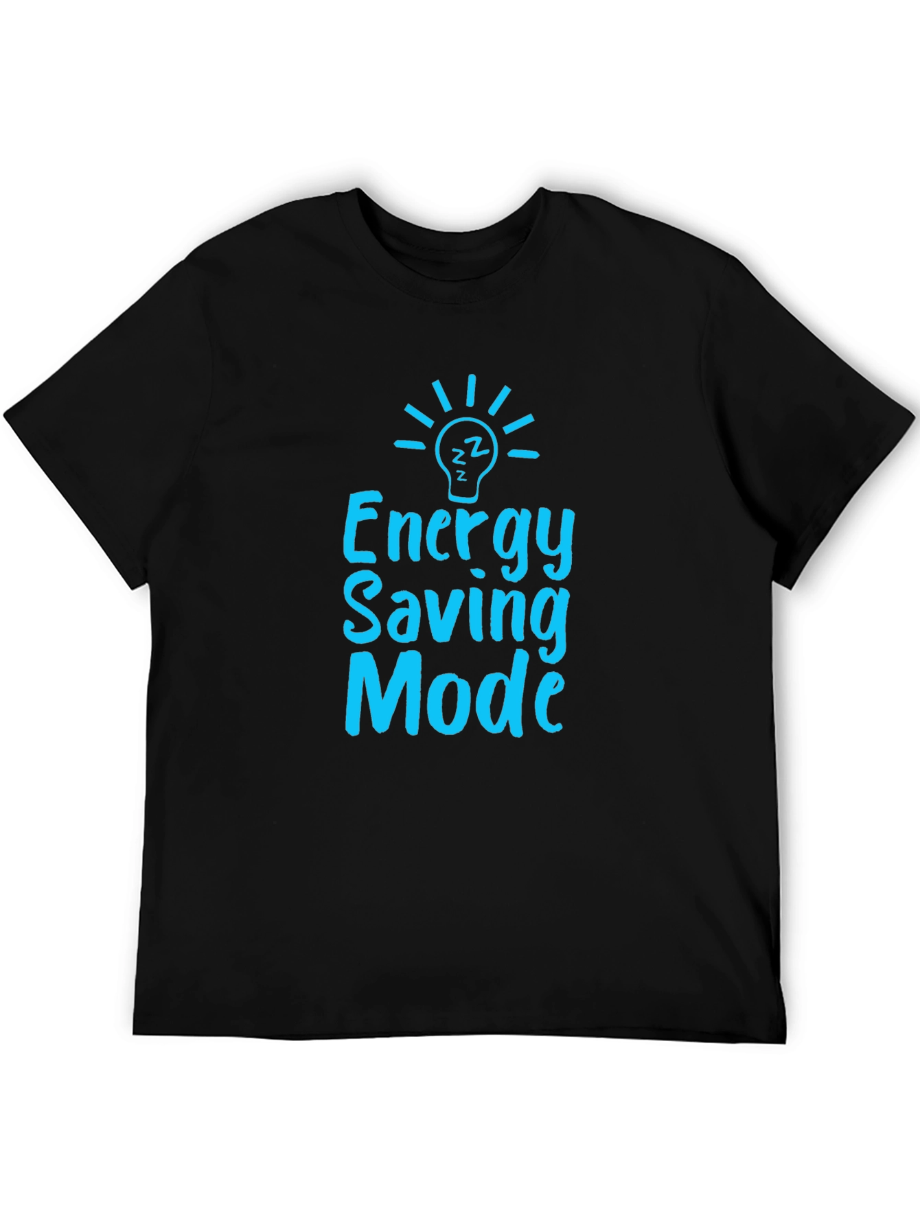 Relájate con estilo con esta camiseta negra para hombre. Presenta un diseño divertido y original en color azul: una bombilla con símbolos de sueño y la frase "Energy Saving Mode". Perfecta para esos días de descanso, esta camiseta de corte clásico te brindará comodidad y un toque de humor. Ideal para usar en casa, salir con amigos o simplemente relajarte. ¡Muestra tu espíritu relajado con esta prenda única!