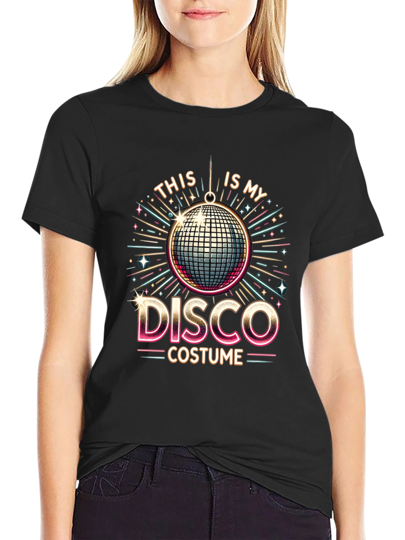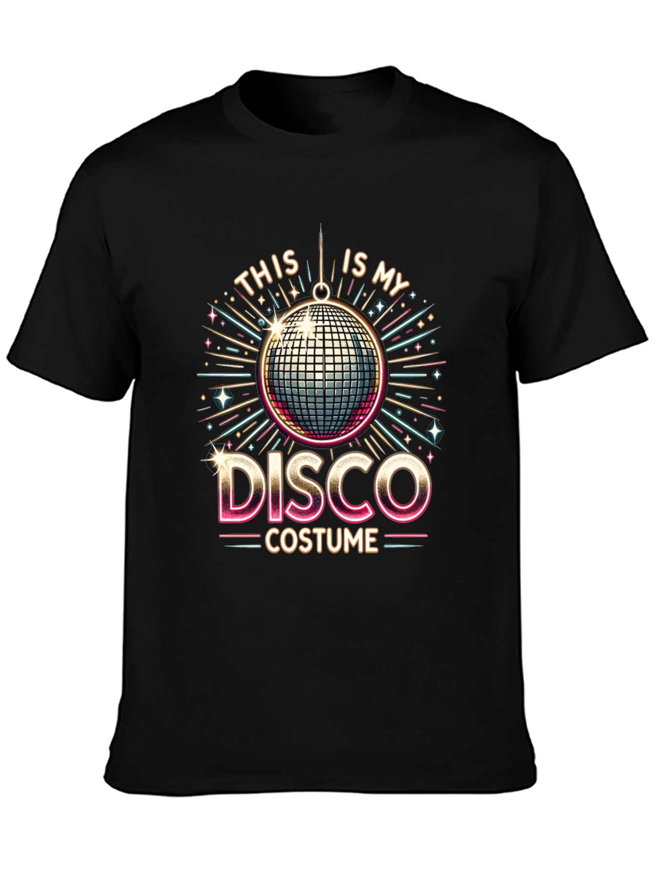 Prepárate para la fiesta con esta llamativa camiseta negra para hombre. Presenta un diseño retro con una bola de discoteca brillante como punto focal, acompañada del texto "THIS IS MY DISCO COSTUME" en una tipografía vibrante y llamativa. Los rayos de luz multicolores alrededor de la bola de discoteca añaden un toque festivo. Hecha con materiales suaves y cómodos, esta camiseta es perfecta para bailar toda la noche o simplemente para lucir un estilo divertido y retro. Ideal para fiestas temáticas de los 70, eventos de disfraces o para expresar tu amor por la música disco. Una opción única y original para destacar entre la multitud.
