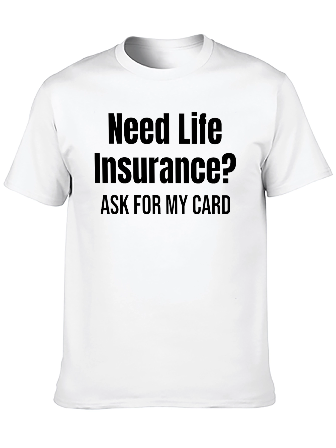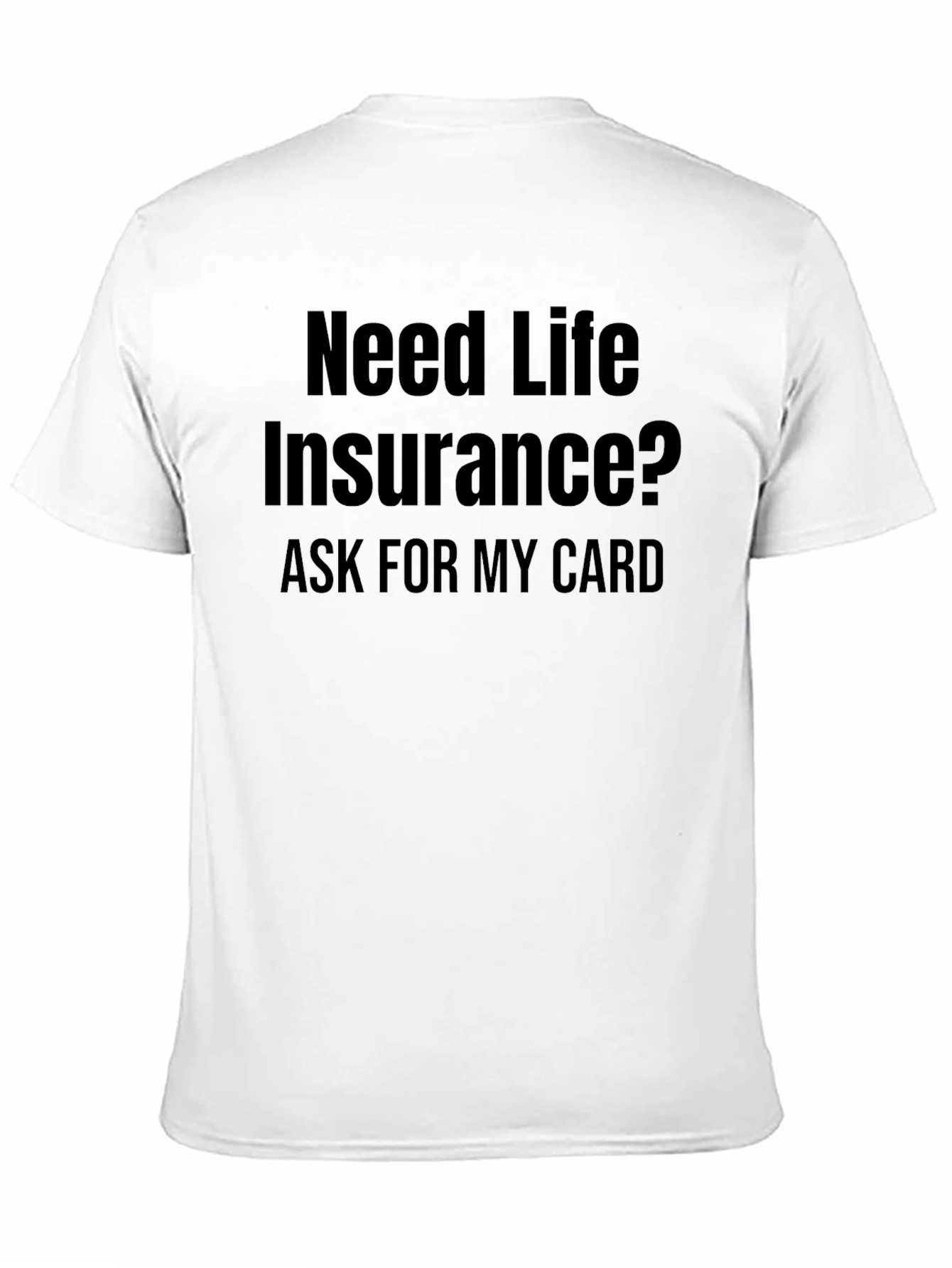Esta camiseta negra clásica presenta un mensaje llamativo: "¿Necesitas Seguro de Vida? Pídeme mi Tarjeta". Perfecta para iniciar conversaciones y promocionar tus servicios de seguros de manera original. Hecha de un material que parece ser de algodón suave, esta camiseta de manga corta ofrece comodidad y estilo. Ideal para llevar en eventos de networking, reuniones informales o en el día a día para captar la atención y generar interés en tus servicios. Una forma divertida y directa de hacer publicidad y dar a conocer tu profesión. El diseño simple y directo asegura que el mensaje sea claro y efectivo. ¡Una prenda imprescindible para cualquier profesional de seguros!