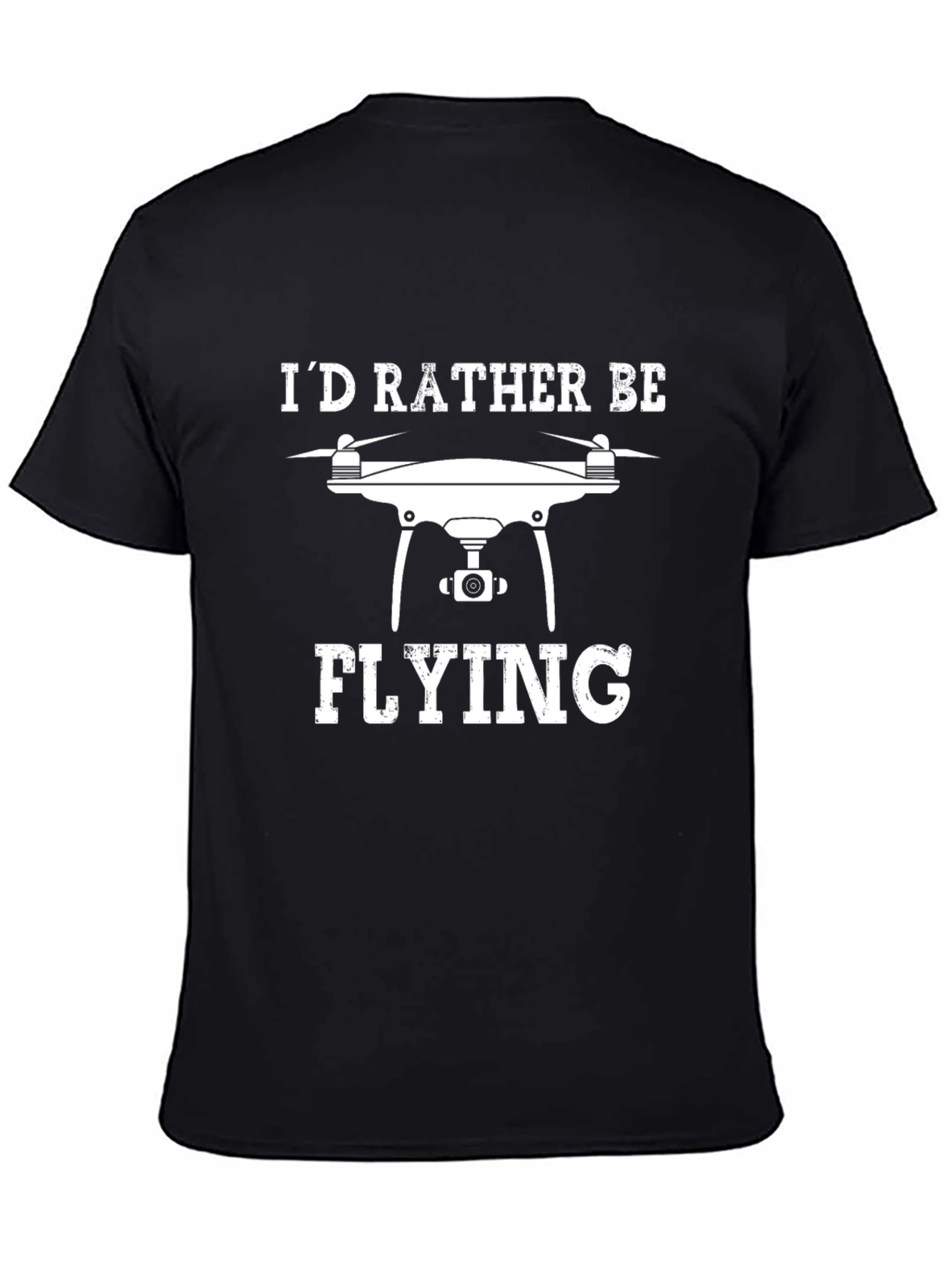 Luce esta moderna camiseta negra con un diseño que refleja tu pasión por los drones. La camiseta muestra un diseño impactante con un dron blanco estilizado y la frase "I'D RATHER BE FLYING" (Prefiero Estar Volando) en letras blancas, ideal para los entusiastas de los drones y la fotografía aérea. Fabricada con materiales suaves y cómodos, esta camiseta es perfecta para usar en tus aventuras de vuelo, salidas casuales o simplemente para expresar tu amor por la tecnología. Su corte clásico asegura un ajuste favorecedor para cualquier tipo de cuerpo. ¡Muestra tu afición con estilo!