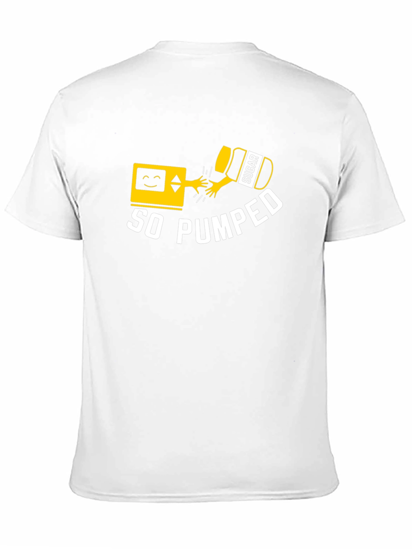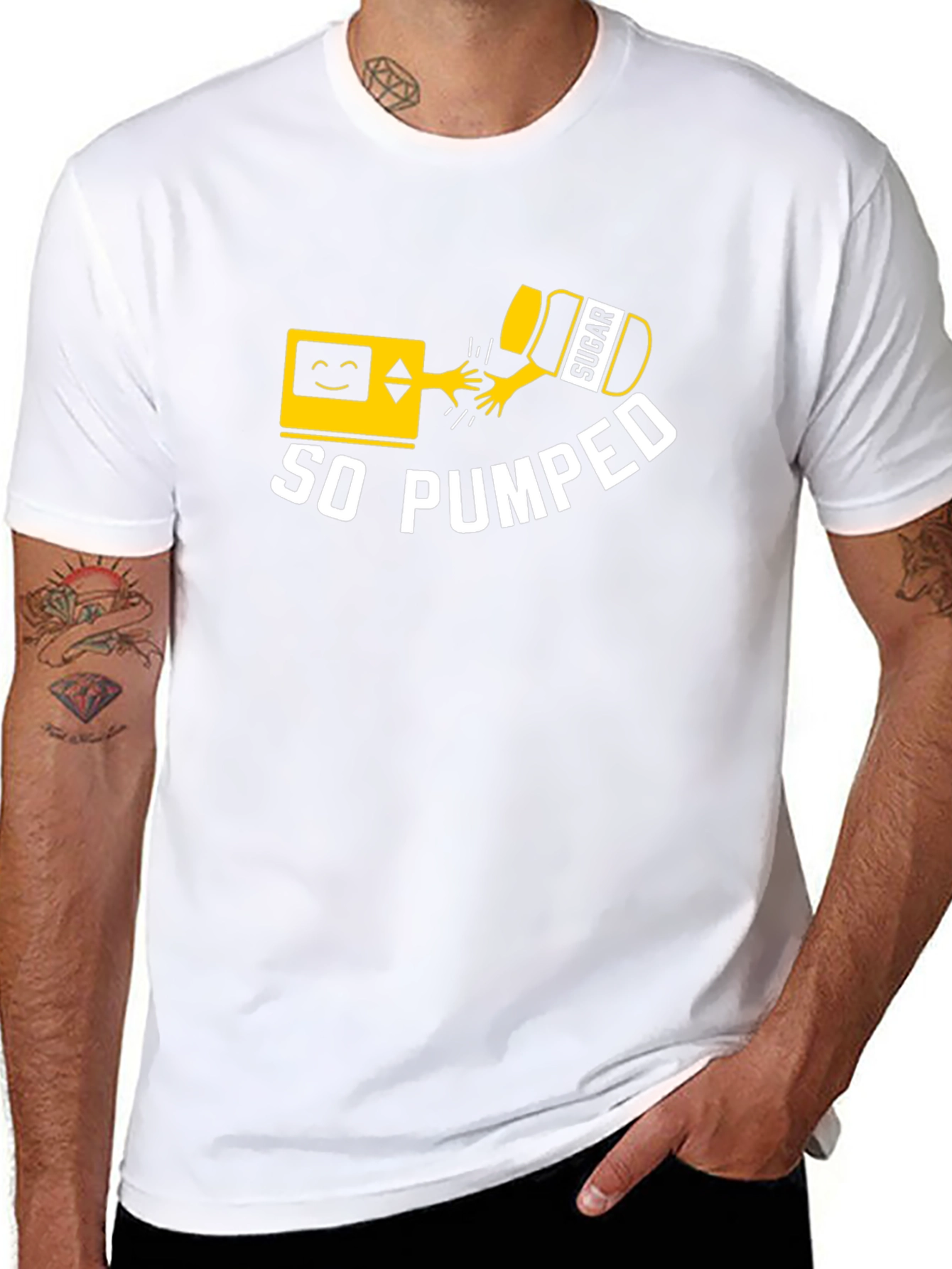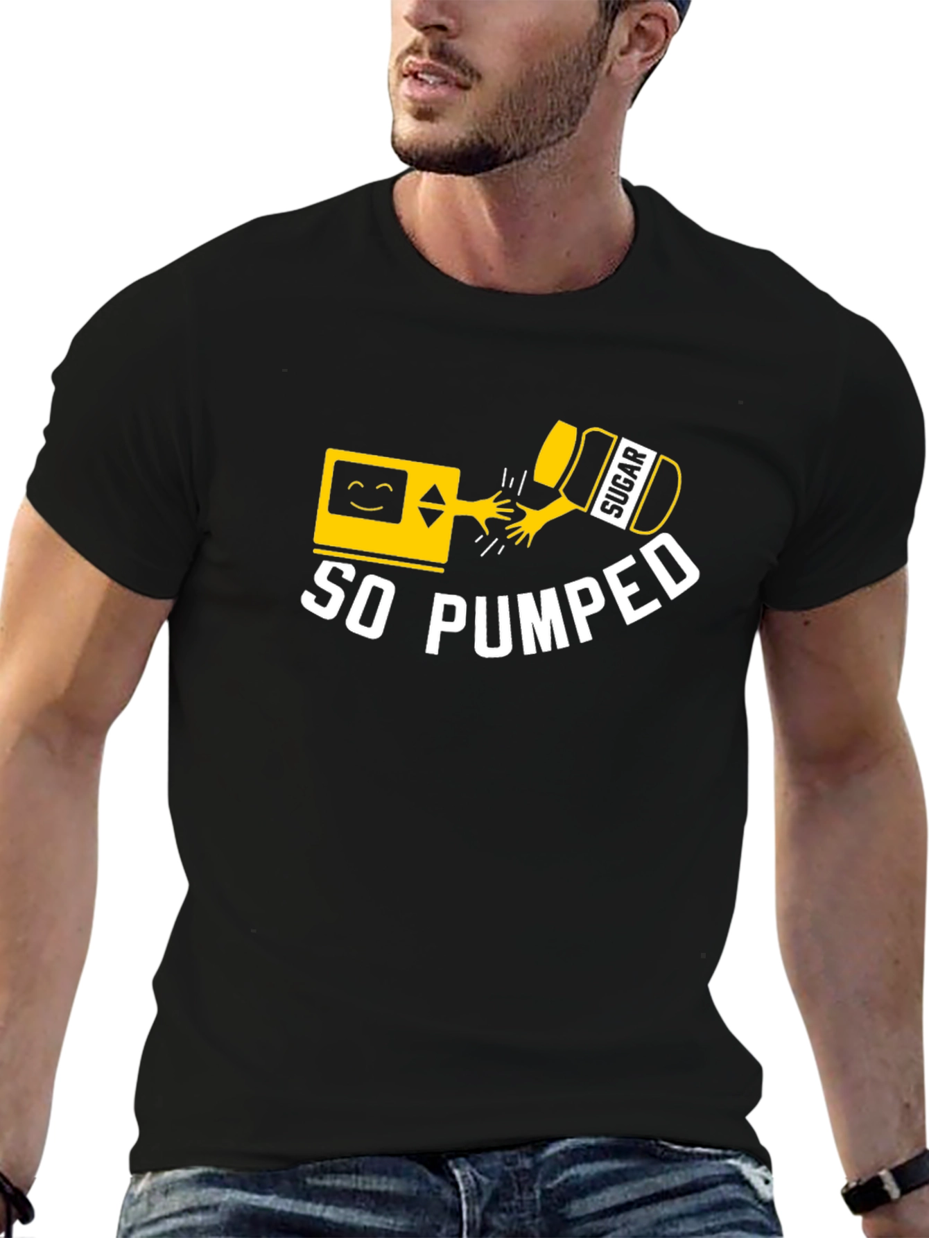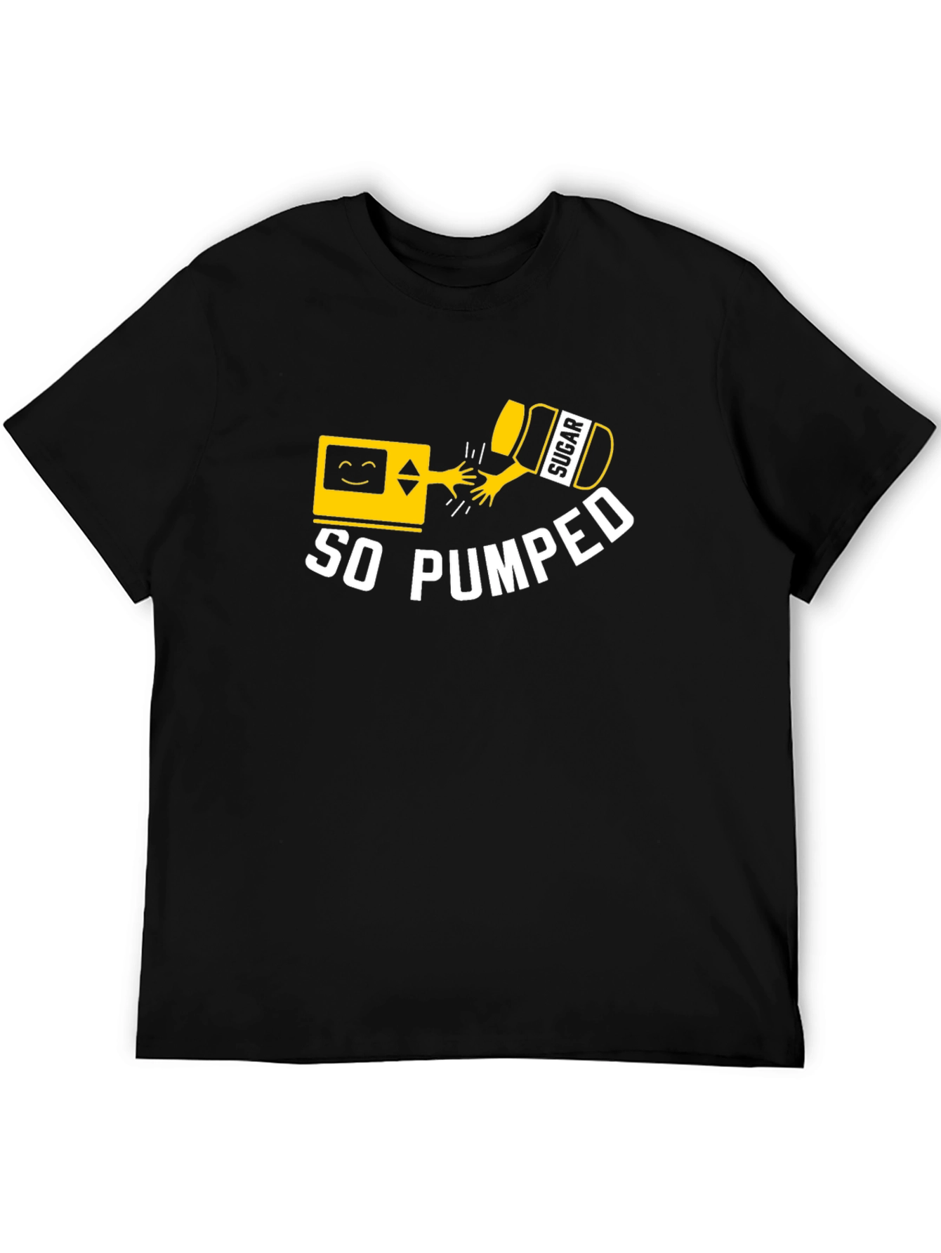 Muestra tu espíritu con esta divertida camiseta negra. Presenta un diseño gráfico amarillo brillante de un medidor de glucosa animado "bombeando" un tarro de azúcar, acompañado del texto "Tan Bombeado" en letras blancas audaces. Fabricada en tela suave, parece de algodón, esta camiseta de manga corta ofrece comodidad y estilo. Perfecta para personas con diabetes que quieren expresar su sentido del humor y crear conciencia. Ideal para usar a diario, eventos de concientización sobre la diabetes o como un regalo divertido y considerado. Agrega un toque de personalidad a tu guardarropa con esta prenda única.