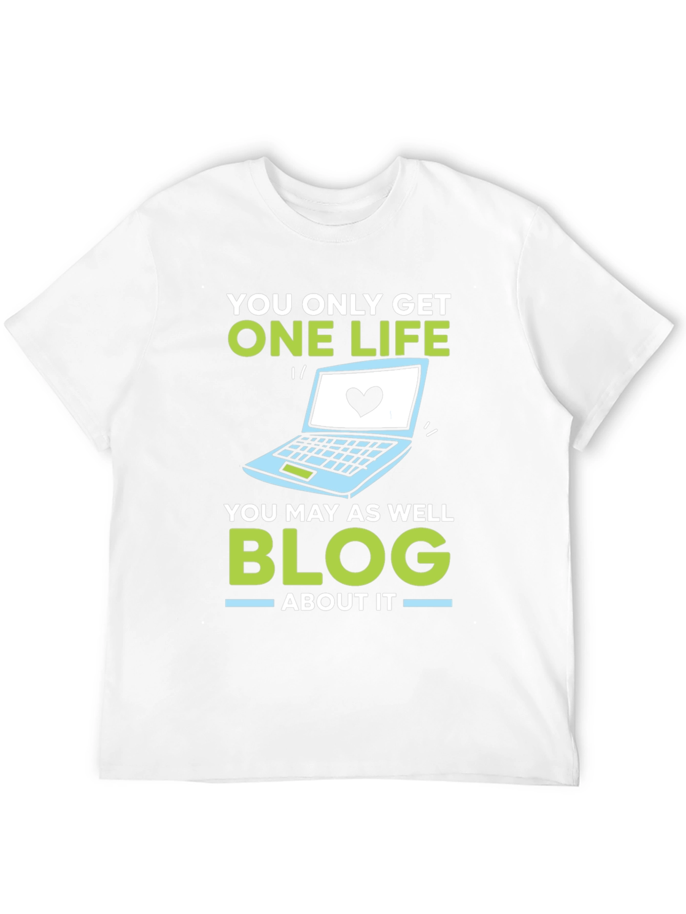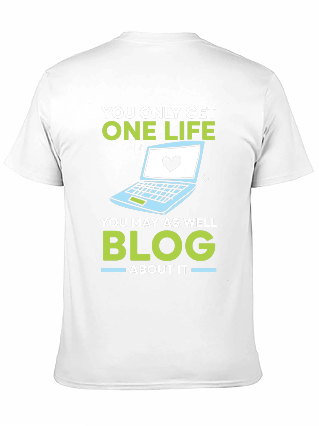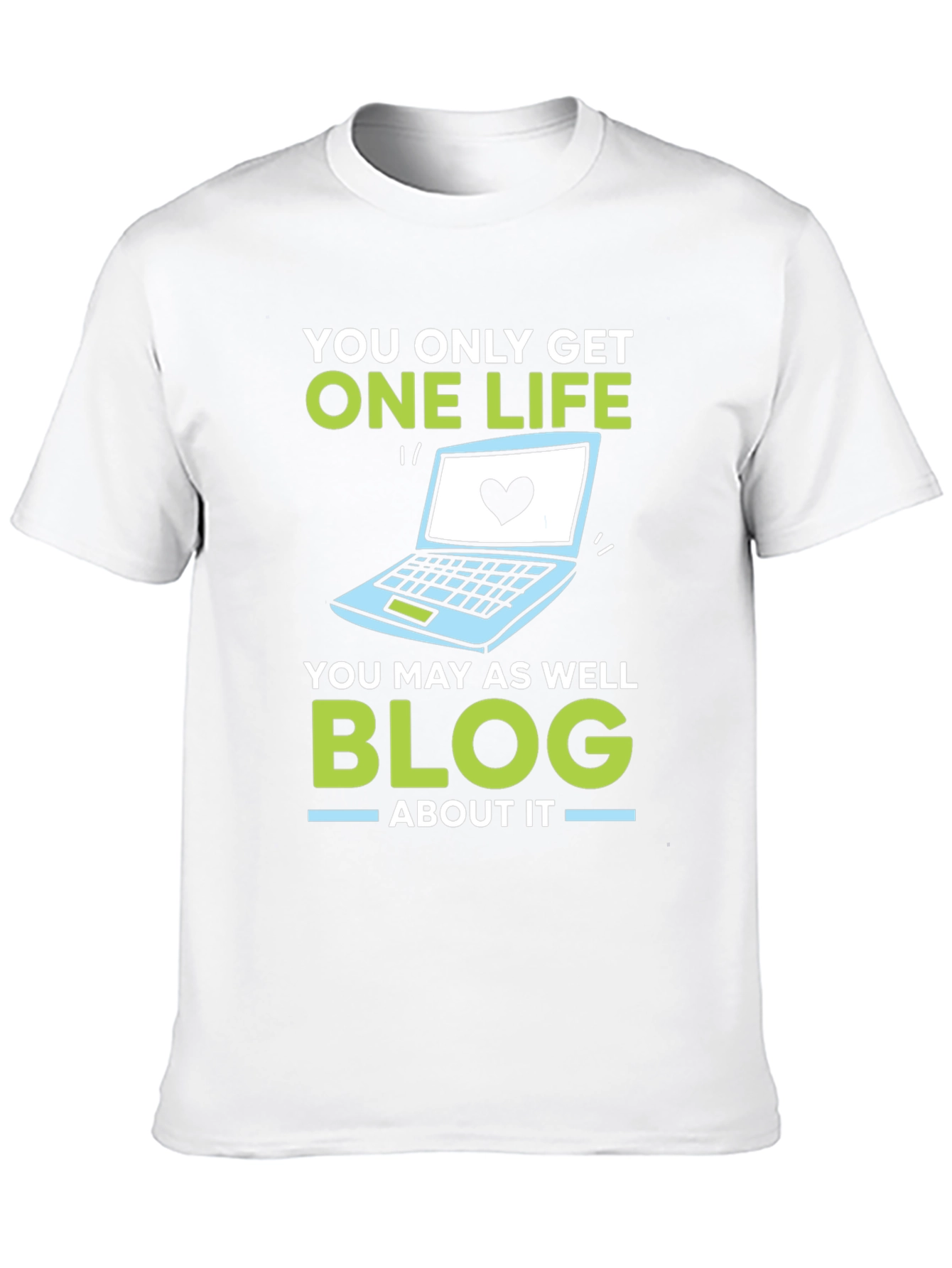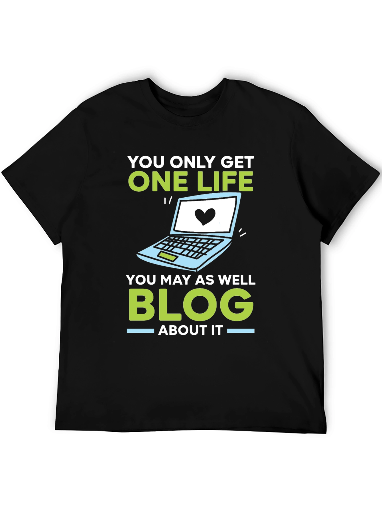 Luce esta camiseta negra de diseño único que captura el espíritu de la vida moderna. Con un estampado llamativo que presenta la frase "You Only Get ONE LIFE, You May As Well BLOG About It" (Solo tienes UNA VIDA, bien puedes bloguear sobre ella), junto con una ilustración de un portátil con un corazón en la pantalla, esta camiseta es perfecta para los amantes de la tecnología, los bloggers y aquellos que abrazan la vida al máximo. Su diseño creativo y mensaje inspirador la hacen ideal para uso diario, eventos casuales o como un regalo original para amigos y familiares. Muestra tu pasión por compartir tus experiencias con estilo y comodidad.