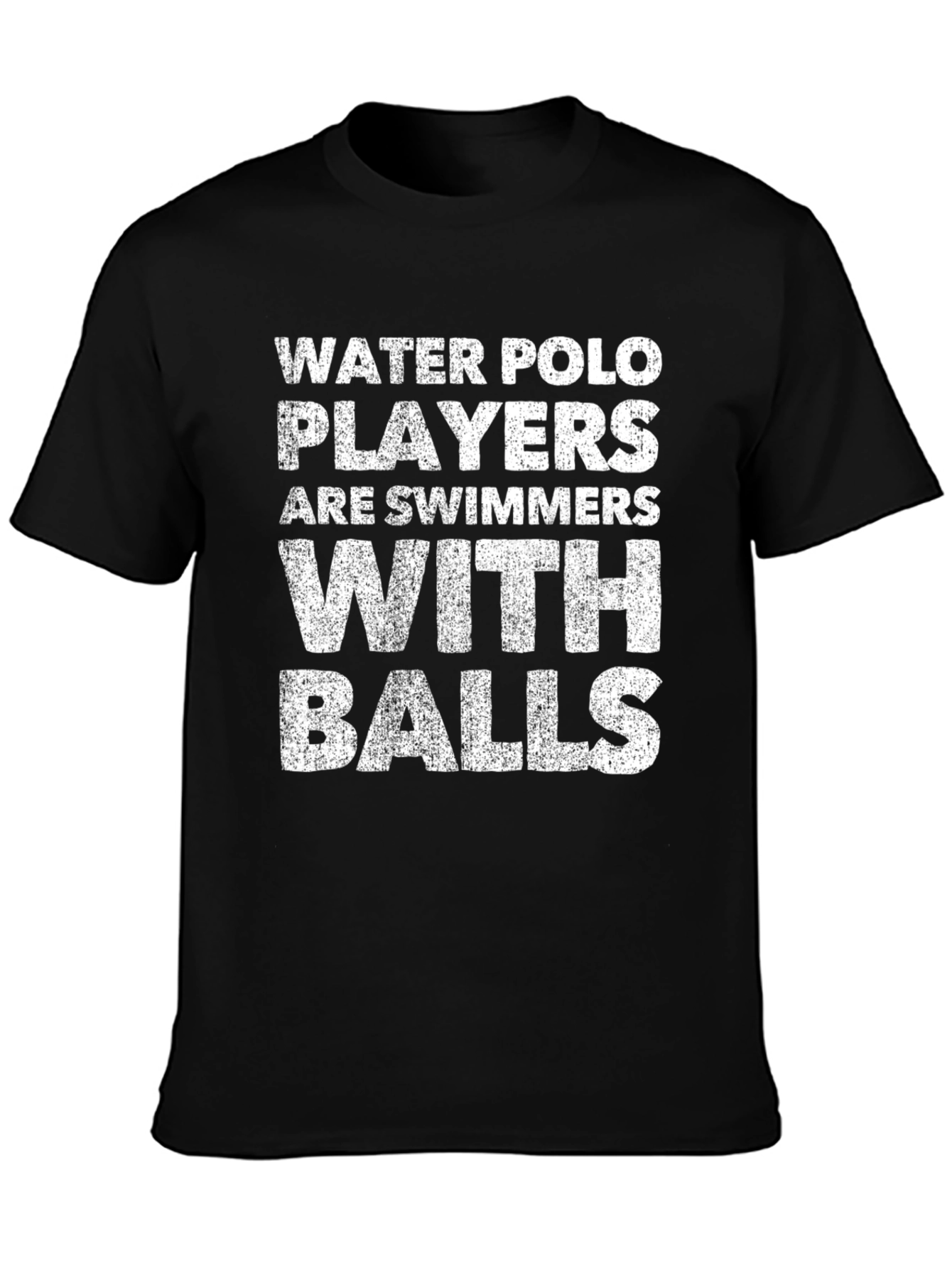 Luce esta llamativa camiseta negra con un mensaje audaz y divertido: "WATER POLO PLAYERS ARE SWIMMERS WITH BALLS" impreso en letras blancas de estilo desgastado. Ideal para jugadores de waterpolo, nadadores o cualquier persona con un sentido del humor irreverente. Fabricada con un material que parece ser suave y cómodo, esta camiseta de manga corta es perfecta para usar en entrenamientos, salidas informales o simplemente para expresar tu pasión por el waterpolo con estilo. Su diseño clásico y corte favorecedor la convierten en una prenda versátil que combinará con cualquier atuendo casual. ¡Atrévete a destacar con esta camiseta original y provocativa!