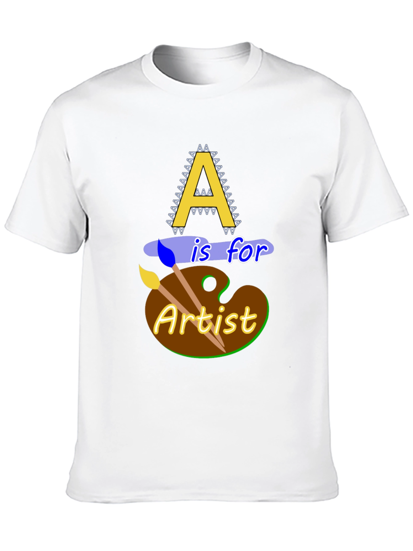Muestra tu pasión por el arte con esta llamativa camiseta negra. Presenta un diseño original con la letra "A" en amarillo rodeada de "A" más pequeñas, acompañada de la frase "is for Artist", pinceles y una paleta de pintura. Ideal para artistas, amantes del arte o cualquier persona que aprecie la creatividad. Fabricada con materiales suaves y cómodos, esta camiseta es perfecta para el uso diario, expresar tu individualidad o regalar a alguien especial. Destaca entre la multitud con este diseño único y divertido que celebra el arte en todas sus formas. ¡Una prenda imprescindible para cualquier armario artístico!