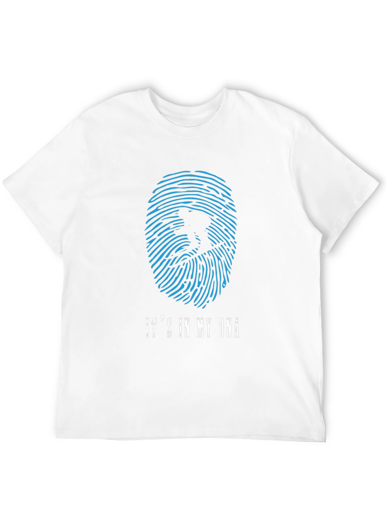 Muestra tu pasión con esta camiseta negra de manga corta. El diseño llamativo presenta una huella dactilar azul que encapsula a un esquiador, junto con la frase "IT'S IN MY DNA", ideal para los amantes de los deportes de aventura. Fabricada en un tejido suave y cómodo, esta camiseta es perfecta para usar a diario, ir al gimnasio o para lucir un estilo casual y deportivo. Su diseño único la convierte en un excelente regalo para aquellos que viven la adrenalina al máximo. ¡Lleva contigo la emoción de los deportes extremos!