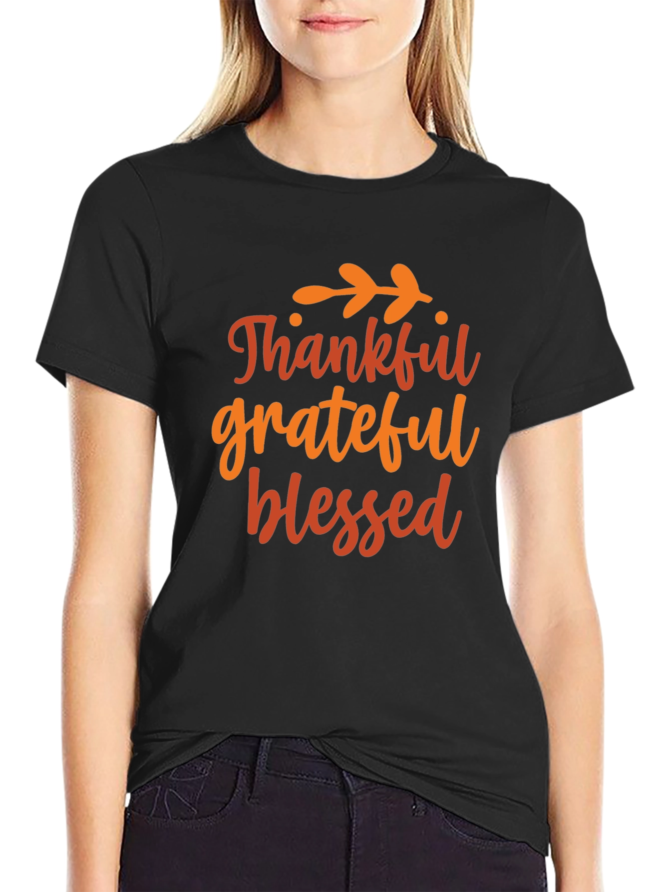 Luce con estilo esta camiseta negra de manga corta. Con un diseño llamativo en tonos naranja y rojo, presenta las palabras "Thankful, Grateful, Blessed" (Agradecido, Bendecido). Ideal para expresar gratitud y positivismo en tu día a día. Fabricada con materiales suaves y cómodos, esta camiseta es perfecta para combinar con tus jeans favoritos, pantalones casuales o incluso faldas. Su corte clásico se adapta a diferentes estilos y ocasiones, desde salidas informales hasta reuniones familiares. Ya sea para ti o como un regalo especial, esta camiseta es una excelente opción para transmitir un mensaje inspirador y celebrar los momentos importantes de la vida. ¡Añádela a tu guardarropa y comparte tu gratitud con el mundo!