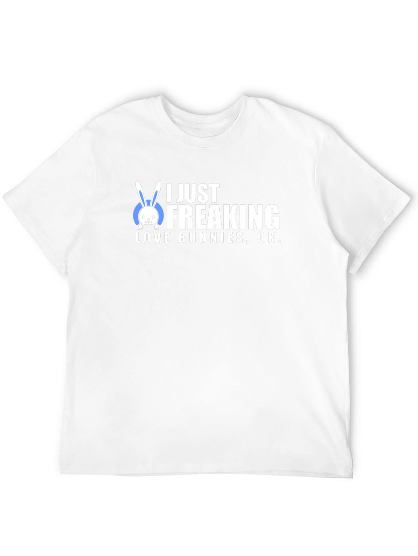 Muestra tu amor por los conejos con esta camiseta negra de diseño único. La frase "I JUST FREAKING LOVE BUNNIES, OK." (Simplemente amo los conejos, ok) está impresa en llamativo color blanco, junto a una adorable ilustración de un conejo. Perfecta para los amantes de los animales y aquellos que buscan una prenda divertida y original. Ideal para usar en eventos casuales, paseos por la ciudad o simplemente para relajarte en casa. Su color negro es muy combinable. ¡Añade esta camiseta a tu guardarropa y expresa tu personalidad con estilo!