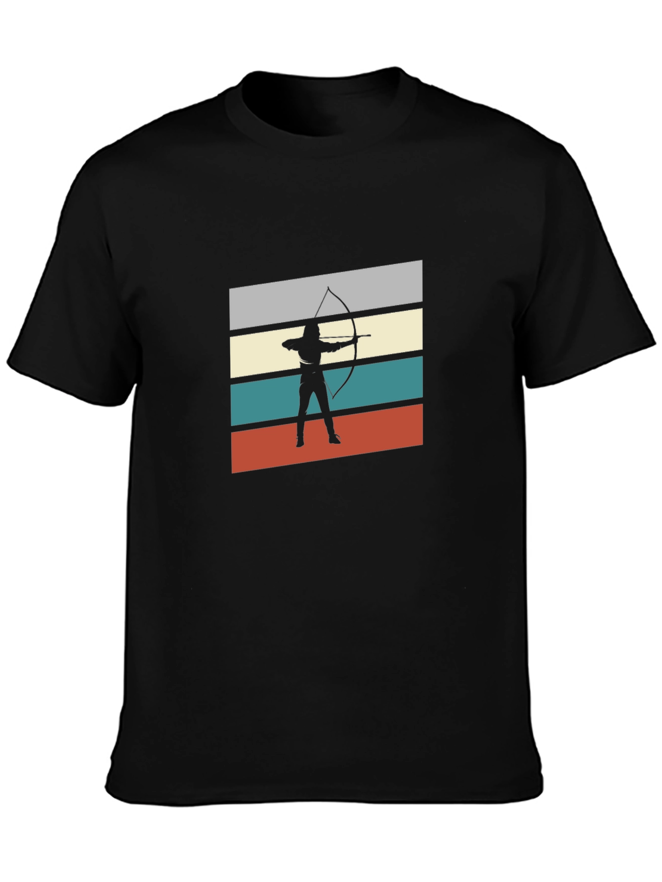 Esta elegante camiseta negra presenta un diseño retro con la silueta de un arquero en un bloque de color a rayas. Fabricada con una tela suave y cómoda, esta camiseta de manga corta es perfecta para el uso diario. El diseño llamativo la convierte en una prenda ideal para expresar tu estilo único. Úsala para salir con amigos, ir al gimnasio o simplemente relajarte en casa. Ideal para los amantes del tiro con arco y del estilo vintage. Añade un toque retro a tu guardarropa con esta camiseta única.