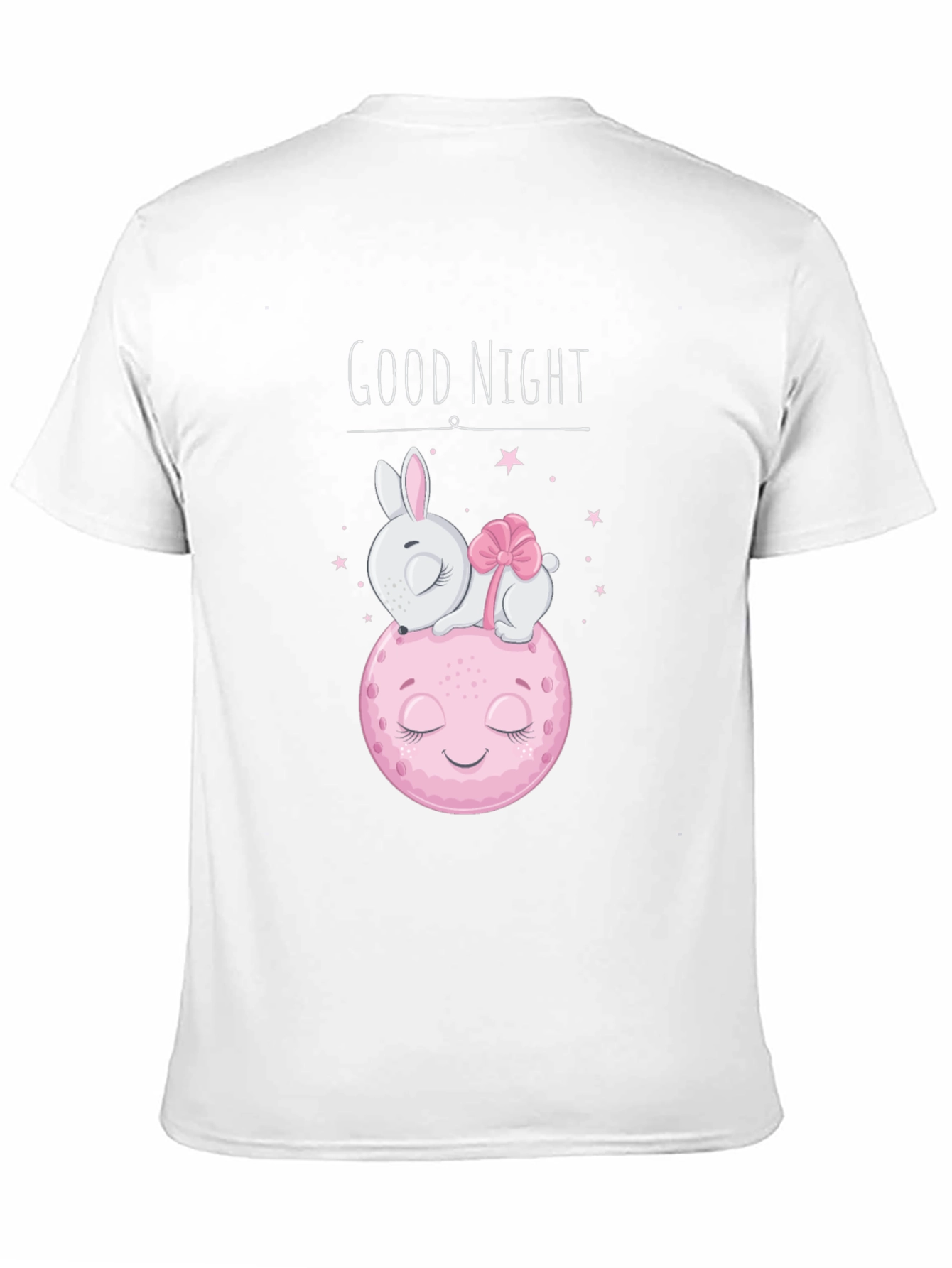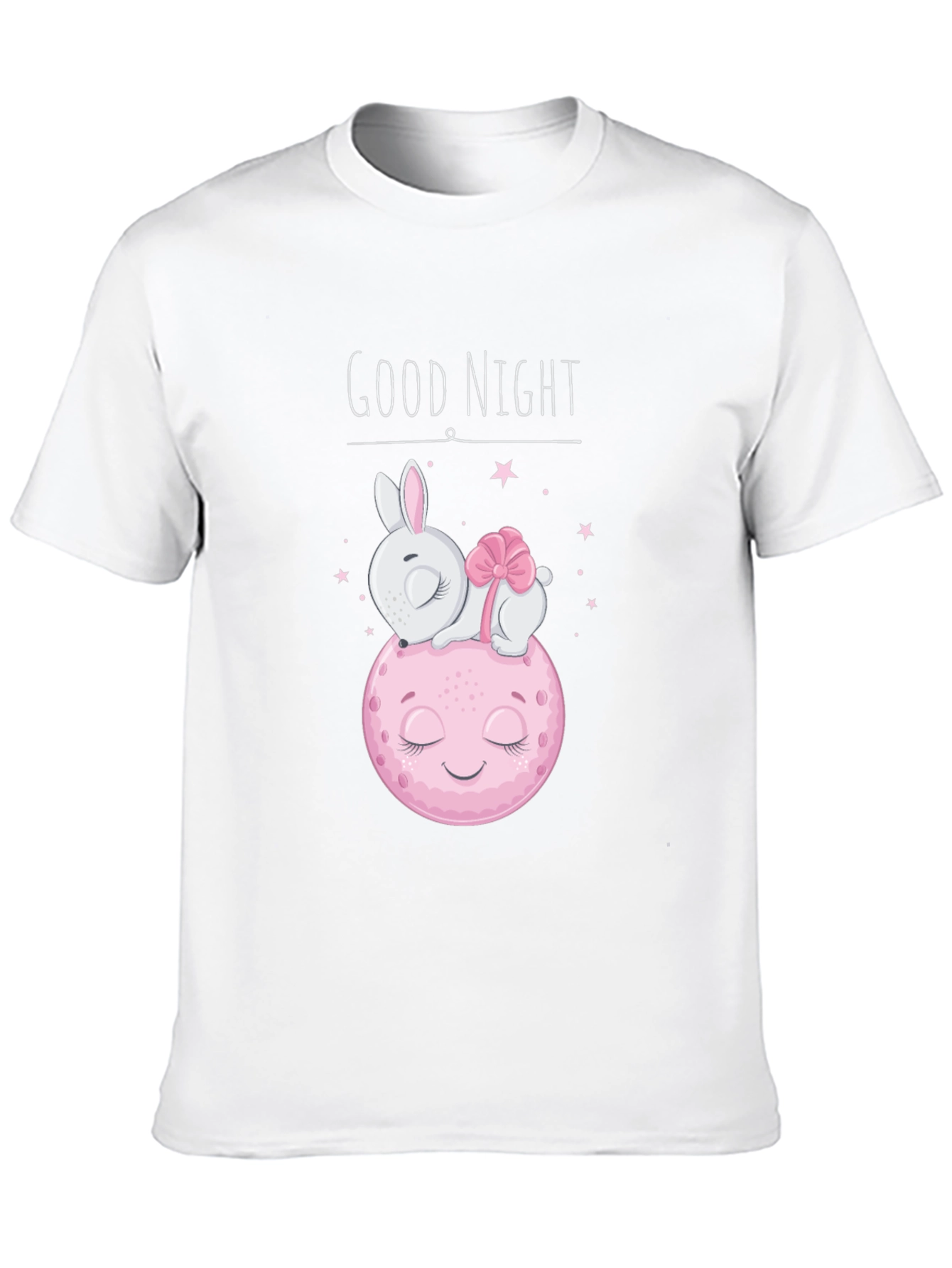 Esta adorable camiseta negra presenta un diseño encantador con un conejito blanco durmiendo sobre una luna rosa sonriente. La frase "GOOD NIGHT" aparece en la parte superior, complementada con pequeñas estrellas brillantes. Ideal para amantes de los diseños tiernos y relajantes. Perfecta para usar en casa, para dormir o para un look casual y divertido. Su diseño unisex la hace una excelente opción para cualquier persona. ¡Añade un toque de dulzura a tu guardarropa con esta prenda única y cómoda!
