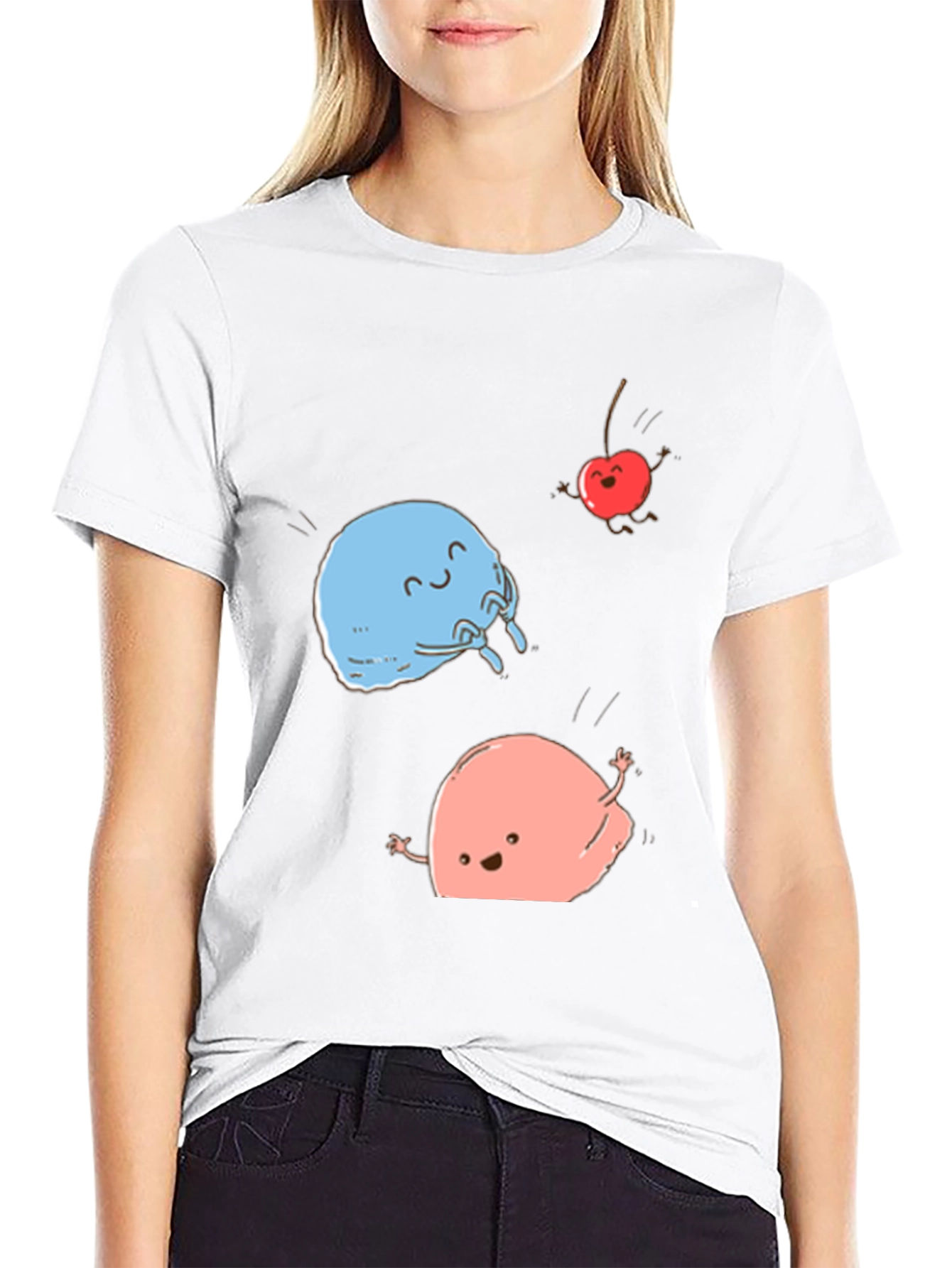 Luce esta divertida camiseta negra con un diseño animado único. La camiseta presenta ilustraciones de personajes adorables: una cereza roja sonriente y dos gelatinas, una azul y otra rosa, que parecen estar interactuando alegremente. El diseño está impreso con colores vibrantes, creando un contraste llamativo sobre el fondo negro de la camiseta. Perfecta para añadir un toque de alegría y originalidad a tu vestuario diario. Ideal para llevar en salidas casuales, reuniones con amigos o simplemente para expresar tu personalidad divertida y creativa. Fabricada con materiales cómodos y duraderos para asegurar un ajuste perfecto y resistencia al uso cotidiano.