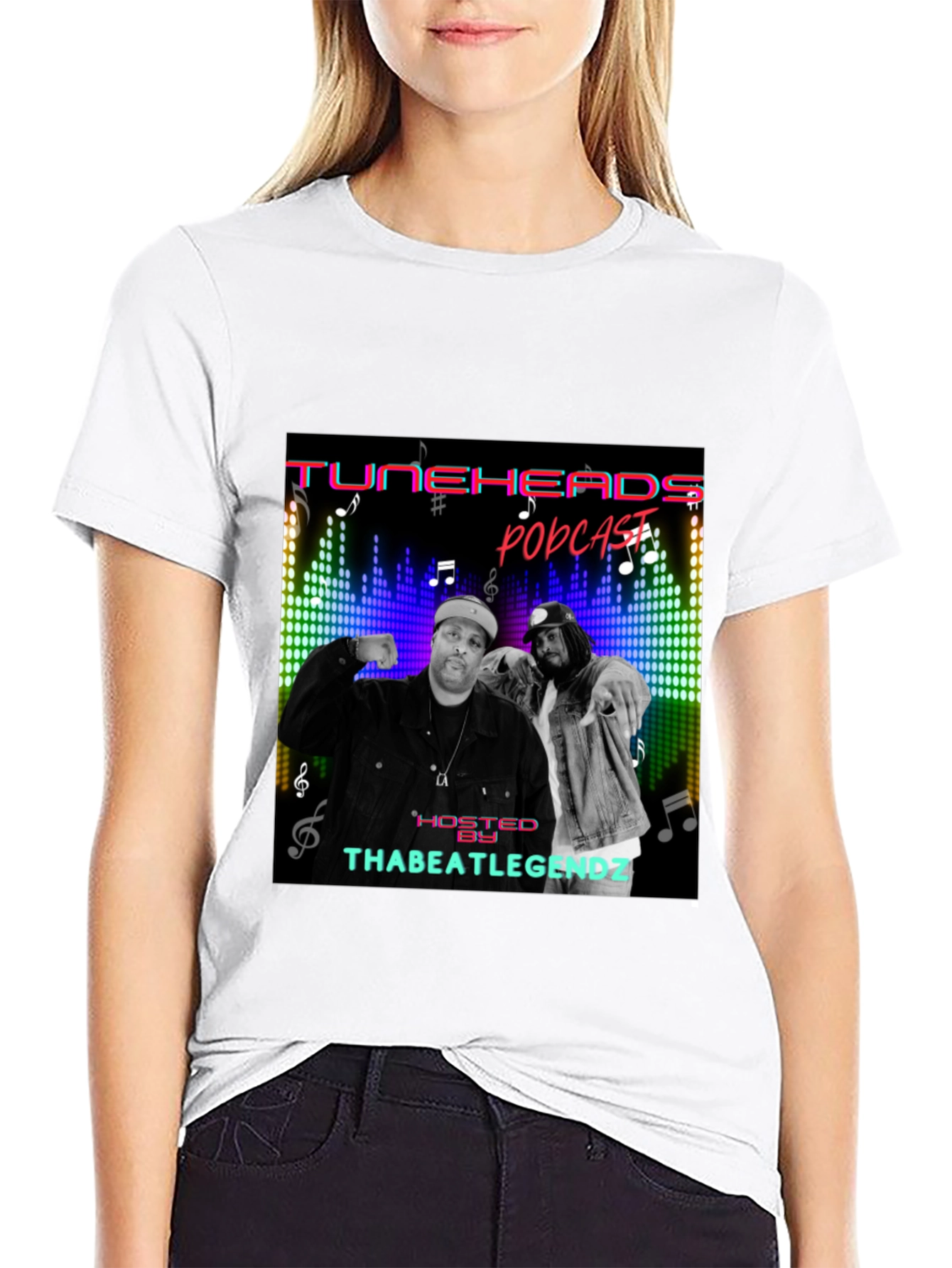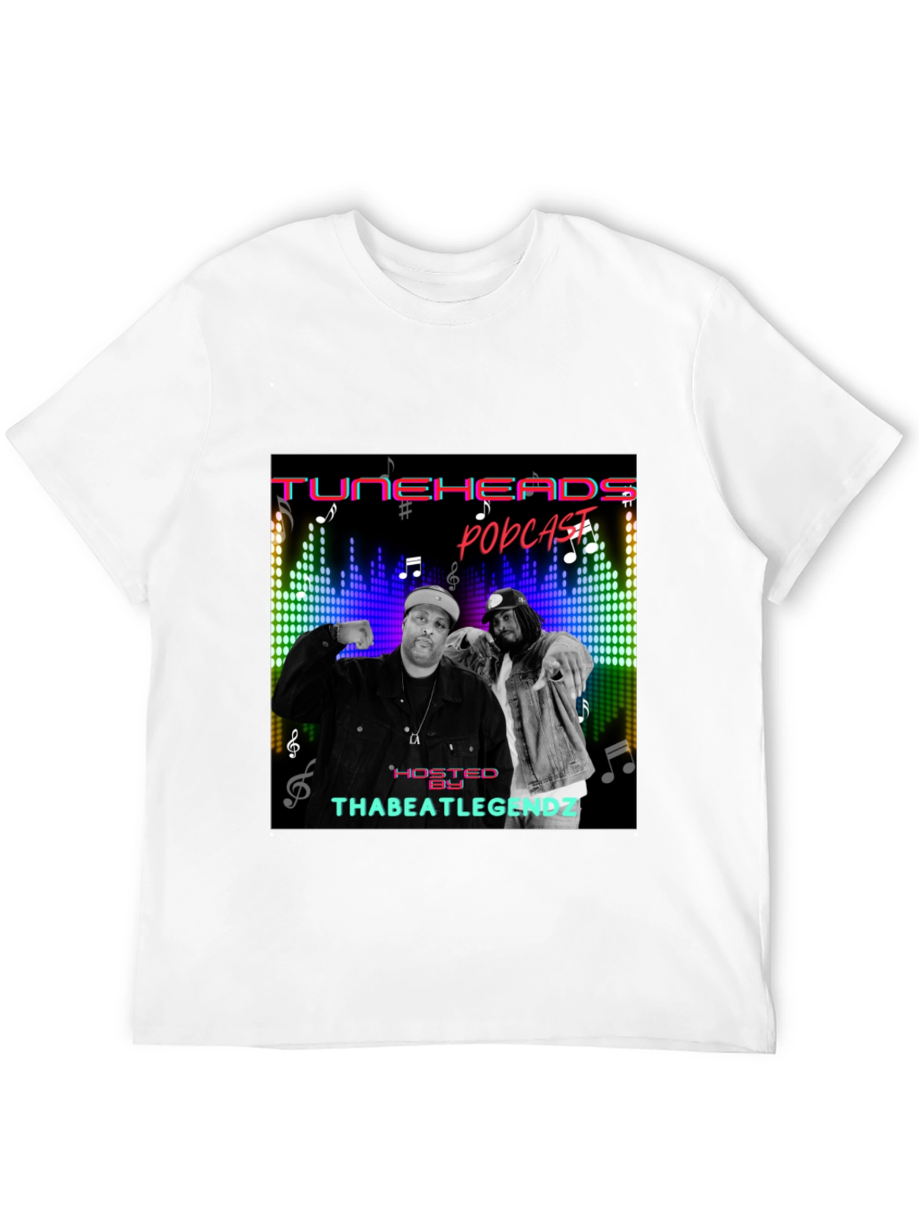 Luce esta increíble camiseta negra con el diseño exclusivo del podcast TuneHeads. La imagen presenta a dos artistas en blanco y negro sobre un fondo vibrante de ecualizador gráfico en tonos verdes, azules y amarillos, adornado con notas musicales. El texto "TUNEHEADS PODCAST" destaca en la parte superior, mientras que "HOSTED BY THABEATLEGENDZ" se ubica en la parte inferior de la imagen. Perfecta para los amantes de la música y seguidores del podcast, esta camiseta es ideal para llevar en eventos, conciertos o simplemente para expresar tu pasión por la buena música. Su diseño llamativo y original la convierte en una prenda imprescindible para cualquier fan.